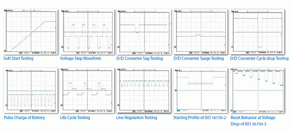 Chroma 62012P-40-120系列电源另一个独特的功能是可建立复杂的DC暂态波形。此功能可对设备进行输入电压漏失瞬断和其他电压变化等测试,是用于飞机设备测试、反用换流器测试和其他会产生电压中断之设备测试的理想选择。其应用的范围包括DC/DC 转换器和反用换流器、压降测试、引擎启动模拟、电池自动充电、电子产品生命周期测试等等。