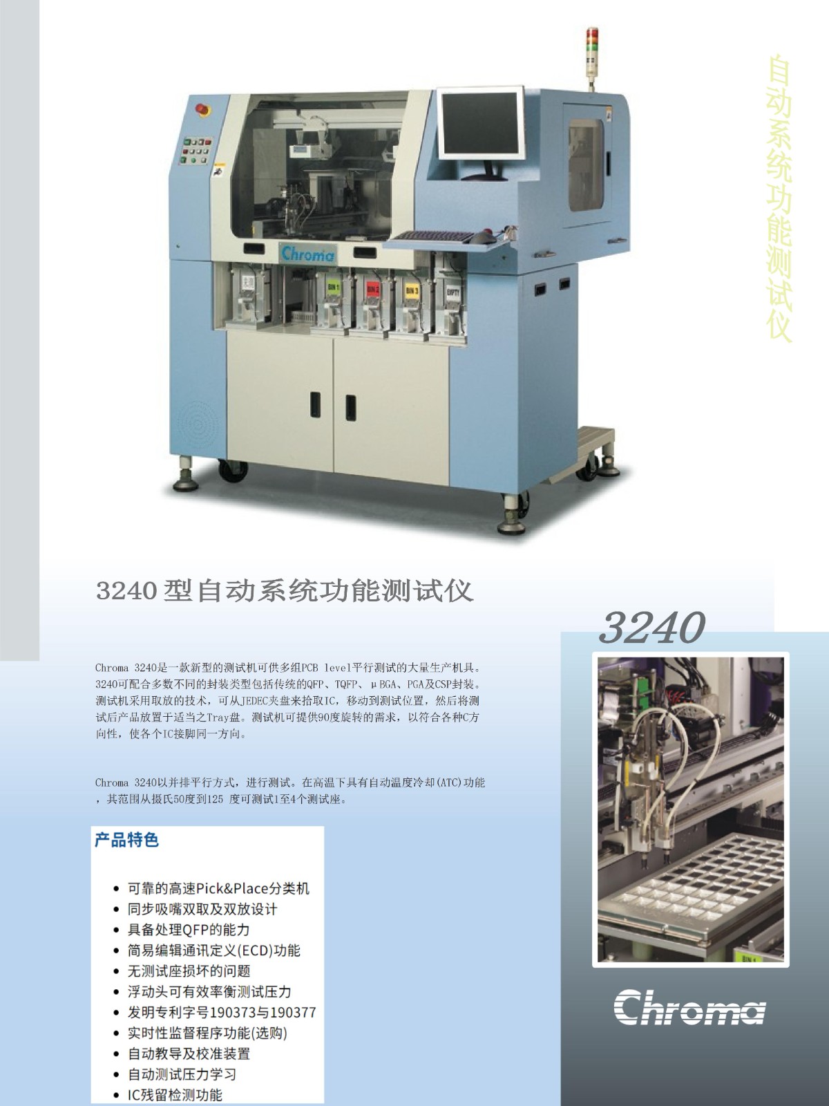 Chroma 3240是一款新型的测试机可供多组PCB level平行测试的大量生产机具。